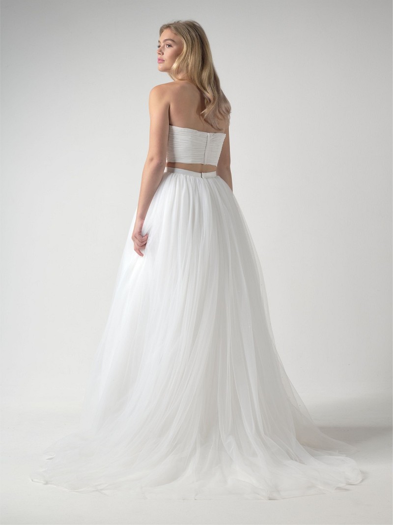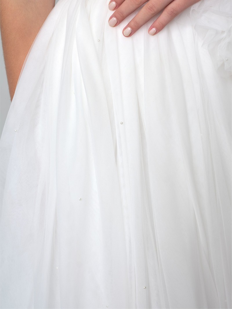 S450-250 – Bruidsrok gemaakt van ivoorkleurige soft-tule met een versiering van parels