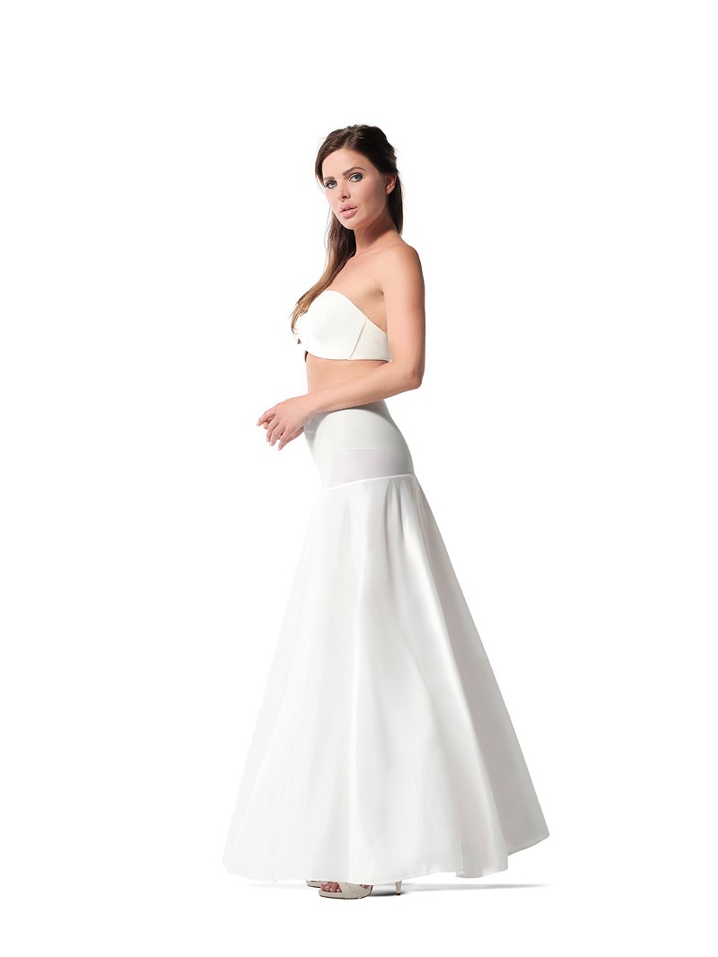 - Wanneer je op zoek bent naar een witte of ivoorkleurige petticoat met een deluxe uitstraling, kies dan voor petticoat 45-190J uit de Essential Collection van Poirier. Deze petticoat heeft een A-lijn silhouet. 45-190J Heeft 2 baleinen en 1 tule strook voor extra support van je bruidsjurk. Daarnaast heeft deze petticoat een figuurcorrigerend jersey heupstuk en een satijnen overrok. De petticoat is verkrijgbaar in meerdere omtrekmaten: 230 cm (45-230J) en 270 cm (45-270J). Deze petticoat is ook leverbaar met een elastische tailleband (45-190E).