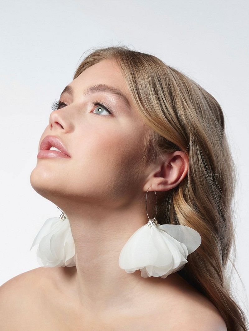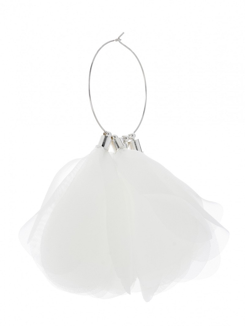 - Wanneer je graag oorbellen met bloemen wil dragen tijdens je grote dag, kies dan voor deze oorbellen uit de Festival Collection van Poirier. Deze oorbellen hebben als basis een zilverkleurige ring met daaraan rozenblaadjes van ivoorkleurige organza. De neutrale kleur van deze oorbellen is te combineren met meerdere typen bruidsoutfits.