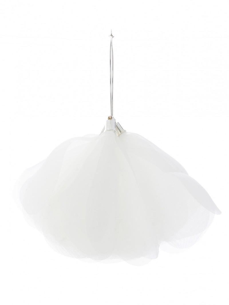 - Kenmerken: zilverkleurige ring, rozenblaadjes van ivoorkleurige organza