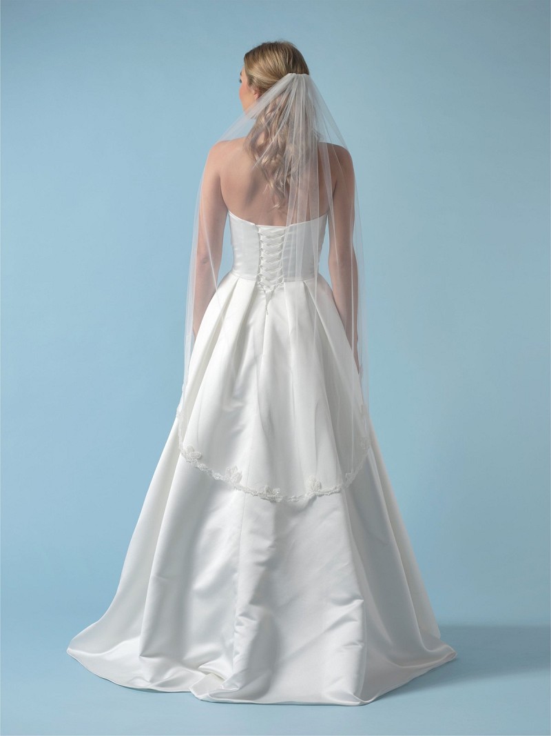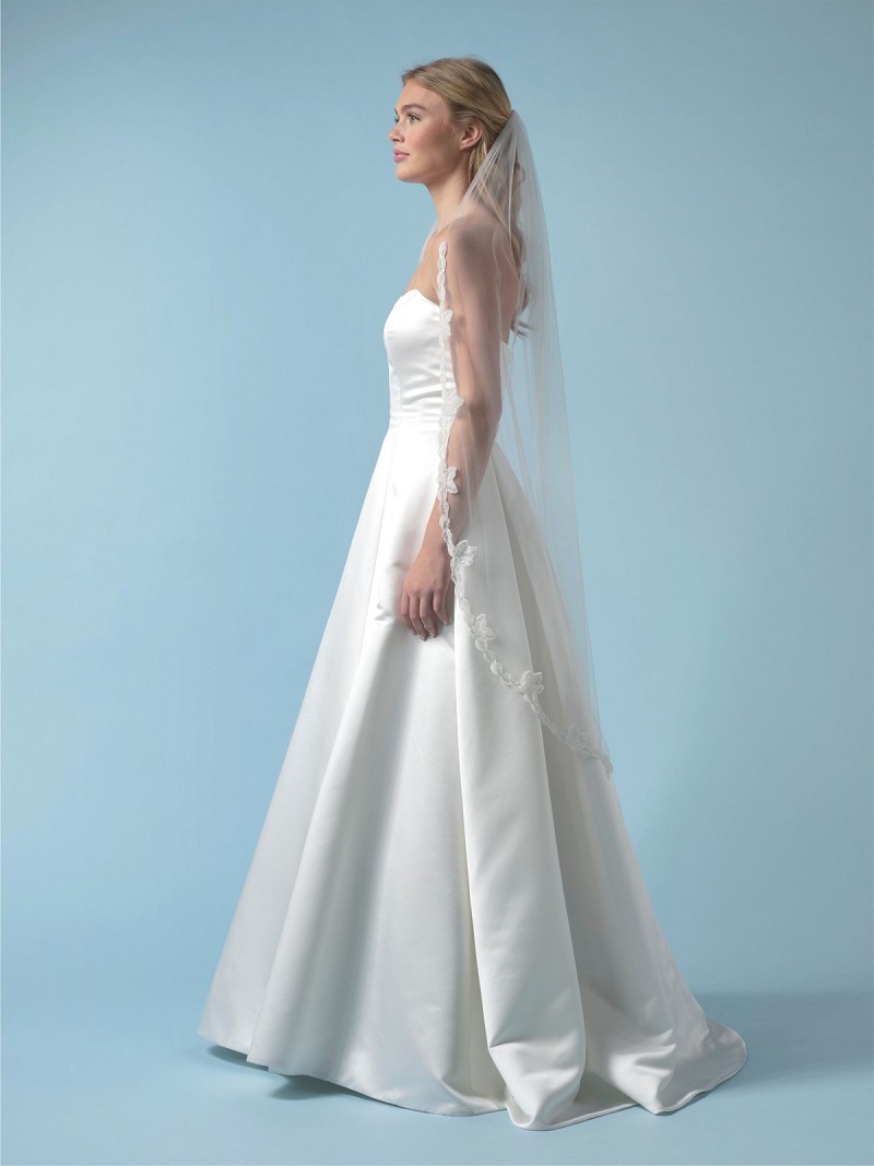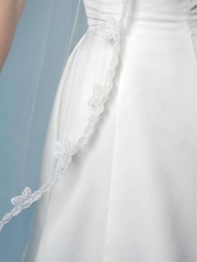 Sluier gemaakt van enkellaagse soft-tule versierd met een rand met een geborduurd bladpatroon met pailletjes en kraaltjes | Lengte: 120 cm