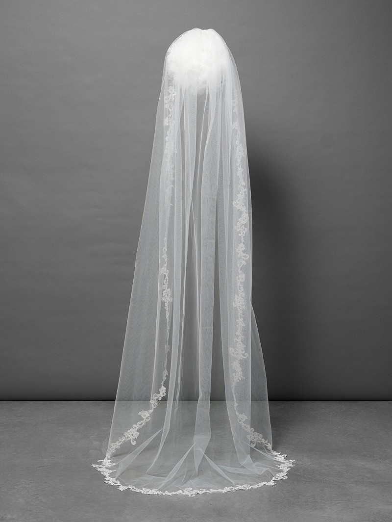 - Kenmerken: sluier gemaakt van enkellaagse soft-tule, versiering van kant met pailletten, 210 cm lang, ivoorkleurig, verkrijgbaar in verschillende varianten