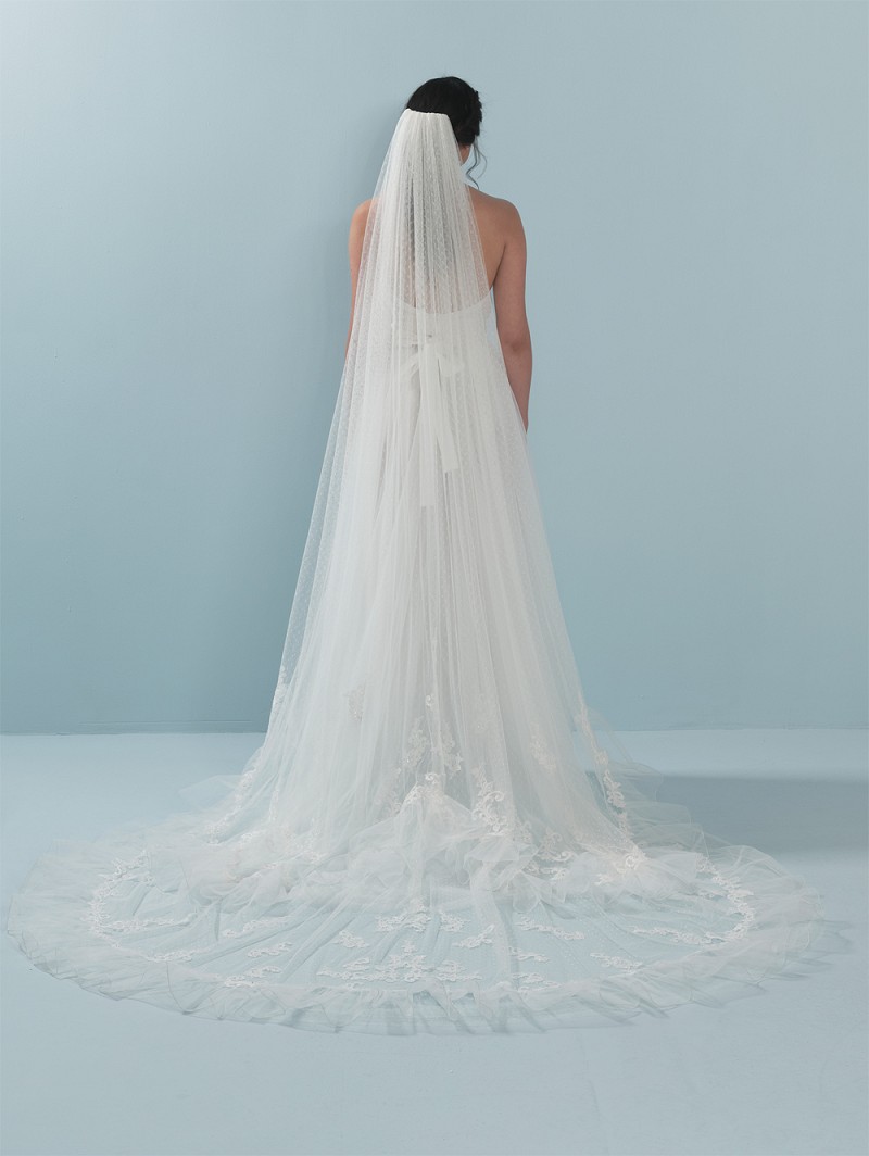 - Met deze sluier laat jij zien dat jij oog hebt voor de kleinste details doordat deze enkellaagse sluier uit de Festival Collection van Poirier gemaakt is van soft-tule, dots heeft en versierd is met roesjes; daarnaast heeft deze sluier pailletten en kristalletjes. Ieder detail op deze sluier is gemaakt van de beste materialen. De lengte van de sluier is 280 cm.
