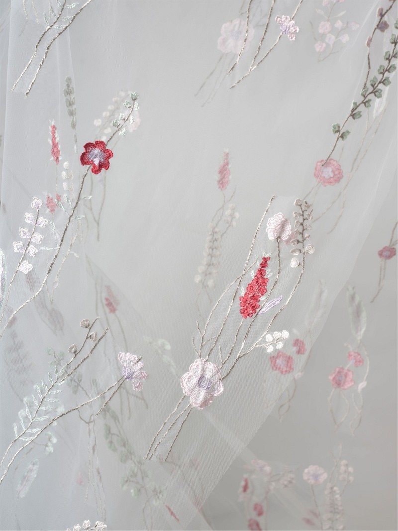Sluier gemaakt van enkellaagse medium-tule versierd met kleurrijke geborduurde florale vormen | Lengte: 350 cm | Geena-lijn