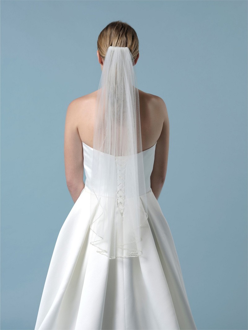 - Wanneer je op zoek bent naar een sluier met een versiering van kraaltjes, kies dan voor sluier S43-080/1/SOFT uit de Essential Collection van Poirier. Deze sluier is gemaakt van ivoorkleurige, enkellaagse soft-tule en is versierd met kraaltjes aan de randen. Lengte: 80 cm. Match deze sluier met je wedding-outfit en creëer een wedding-look die nog lang in ieders geheugen gegrift zal staan.
