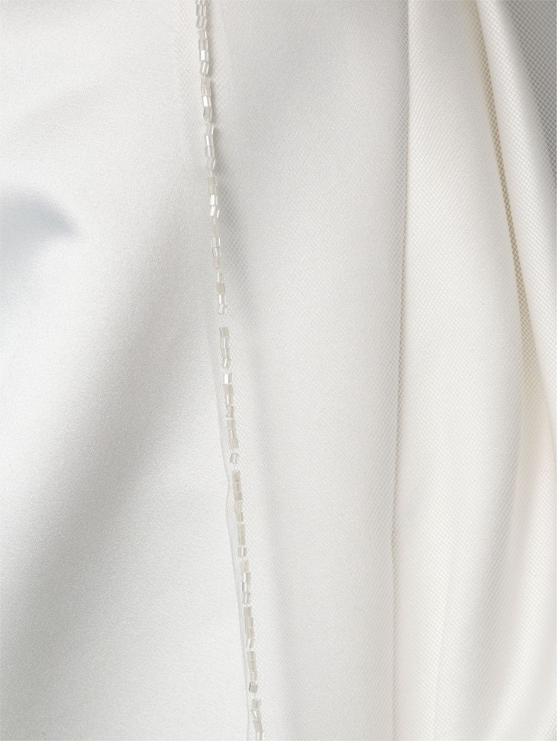 Sluier gemaakt van enkellaagse soft-tule met kraaltjes aan de randen
