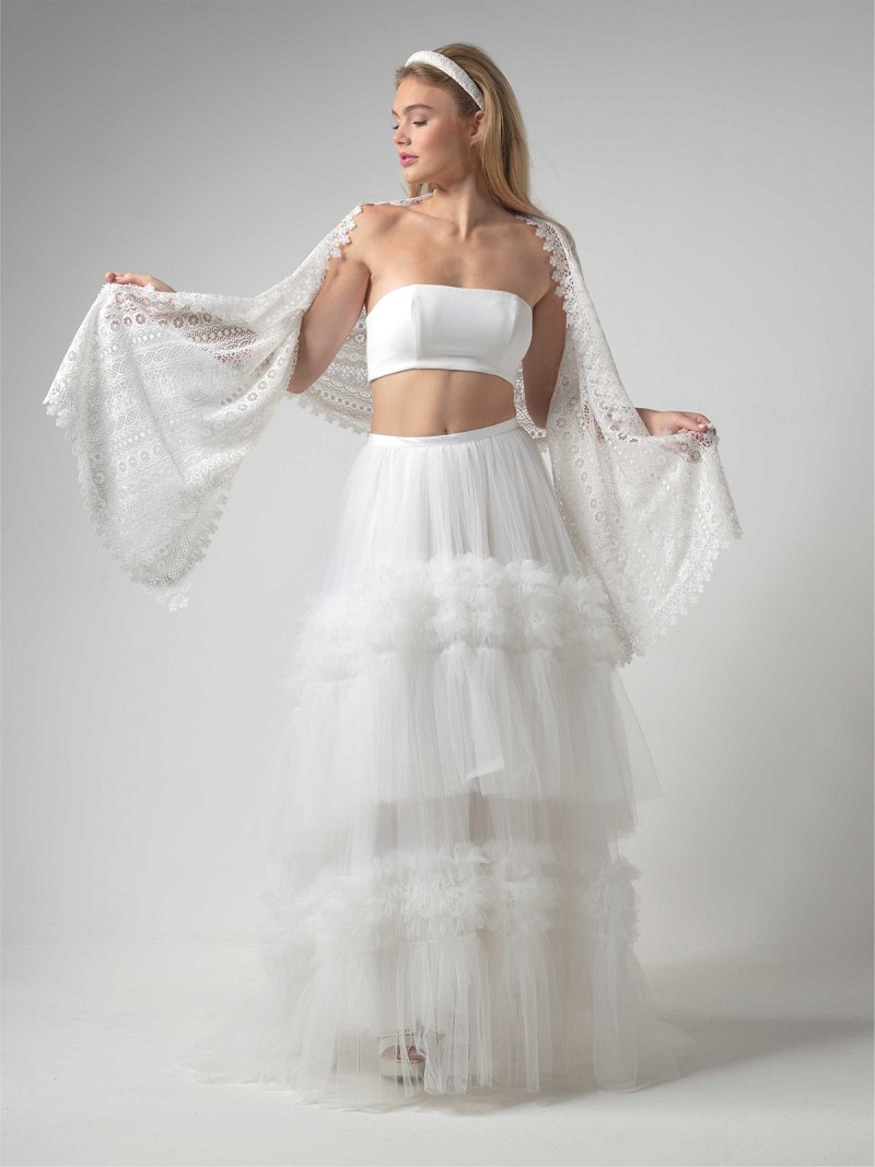 - Geheel gemaakt van ivoorkleurige geborduurde kant