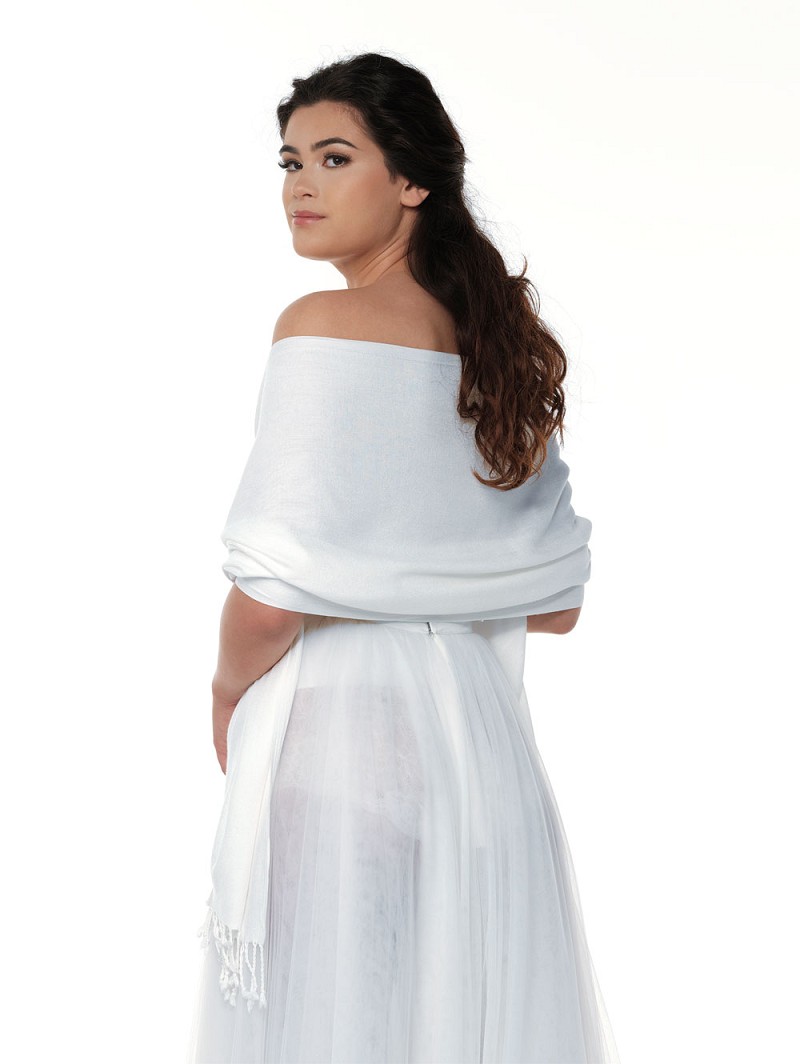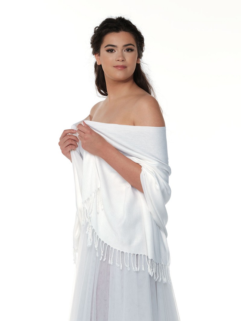 - Ivoorkleurige sjaal met franje