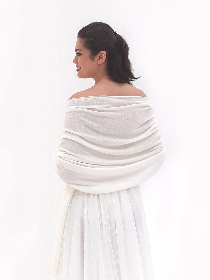 Ben je op zoek naar een stola met een neutrale ivoorkleur?