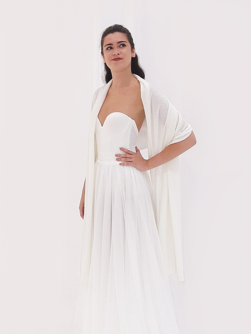 - Kies dan voor de ivoorkleurige stola S167 uit de Essential Collection van Poirier. Deze stola is gemaakt van een samengestelde stof die bestaat uit 16% wol, 20% acryl, 20% nylon en 44% polyester. De afmetingen van deze stola zijn 190 x 70 cm. De stola kan op verschillende manieren worden gedragen, bijvoorbeeld over de schouders. Kies voor het ultieme accessoire om je trouwoutfit compleet te maken. Daarnaast is deze stola ook nog eens erg zacht op de huid.