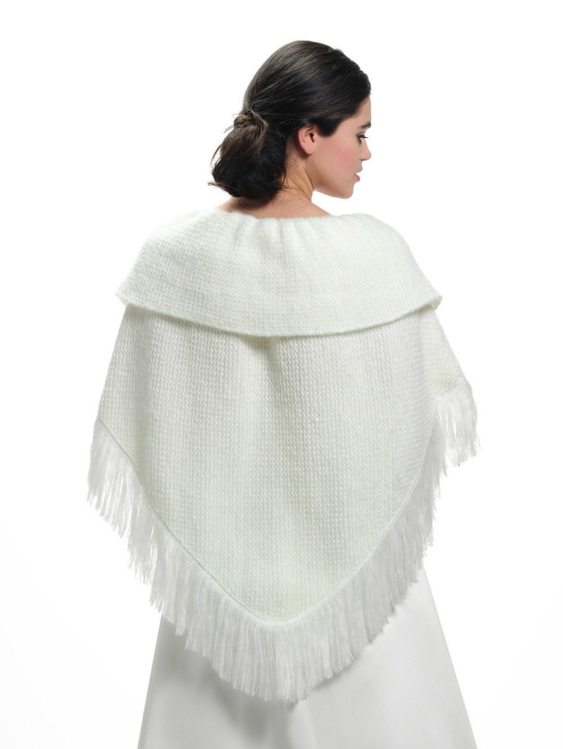 - Kijk eens naar stola S172 uit de Festival Collection van Poirier. Deze stola is ivoorkleurig en gemaakt van een fijn breisel. Draag deze prachtige stola, met een driehoekige vorm (70 cm middenachter), wanneer de temperaturen dalen in het najaar. De stola is zowel praktisch als fashionable en te combineren met typische festivalbruidsjurken. Kies voor een nonchalant chique festival-look.