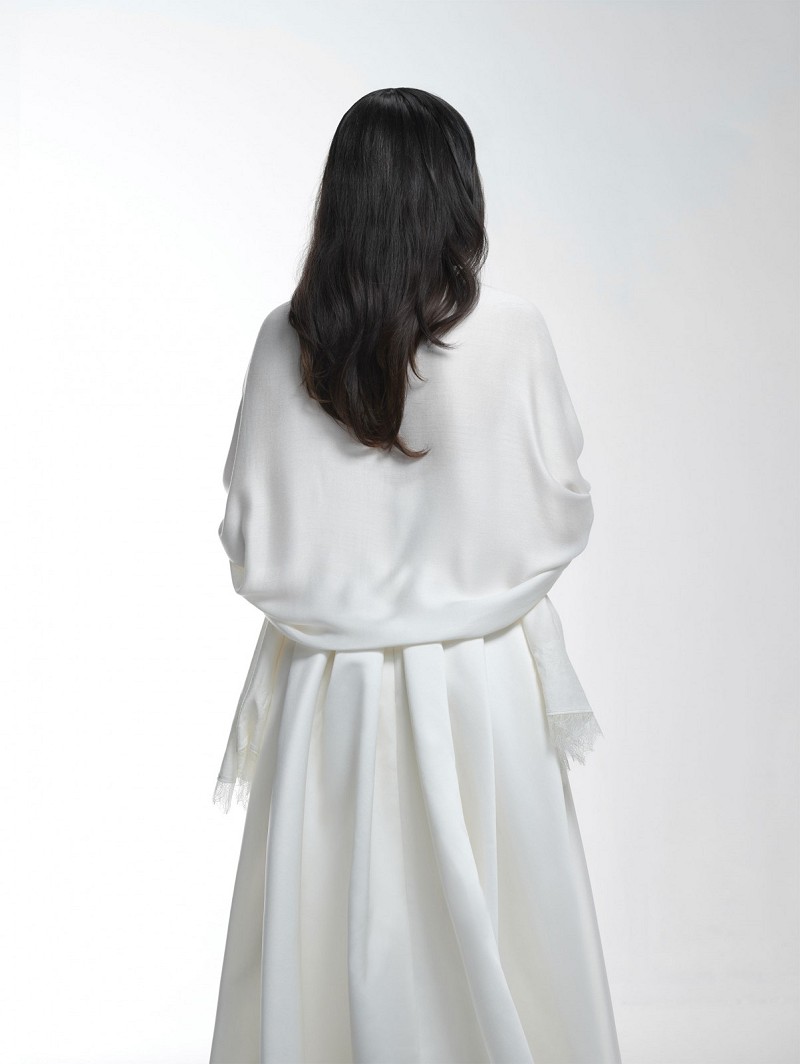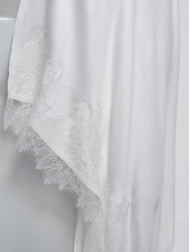- Product: S179 – ivoorkleurige stola met rand van fijne ivoorkleurige Franse kant (pashmina)