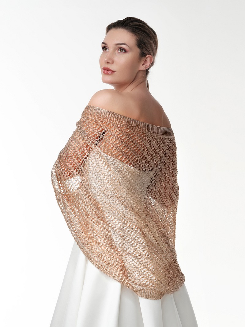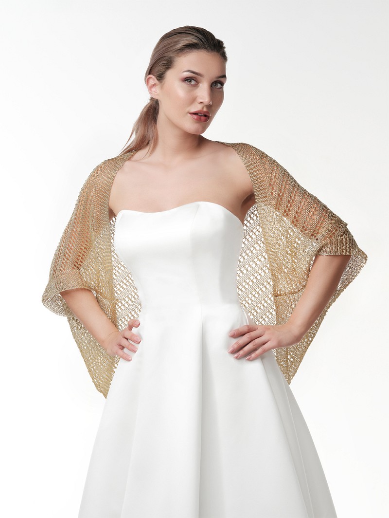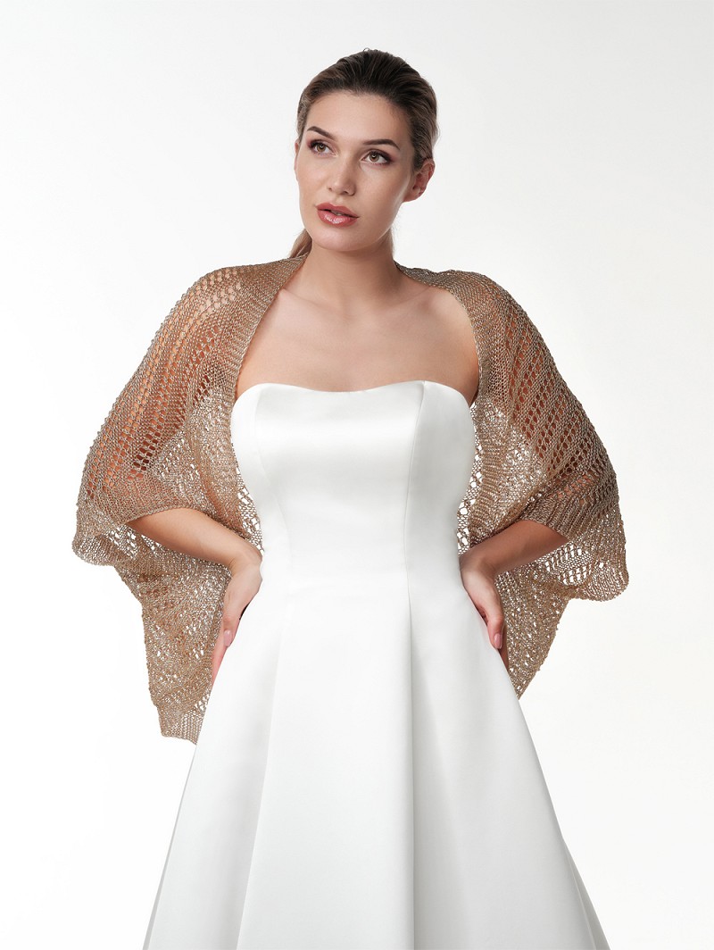 - Jouw trouwlook is helemaal compleet met dit roségoudkleurig of goudkleurig of zilverkleurig metallic-look vestje. Stel dat je een avondparty hebt in de openlucht dan kun je dit vestje dragen om jezelf te warmen, maar dit vestje kun je ook gebruiken om je hele wedding look tot één geheel te vormen, bijvoorbeeld gecombineerd met de (haar)sieraden in de bijpassende kleuren van Poirier.