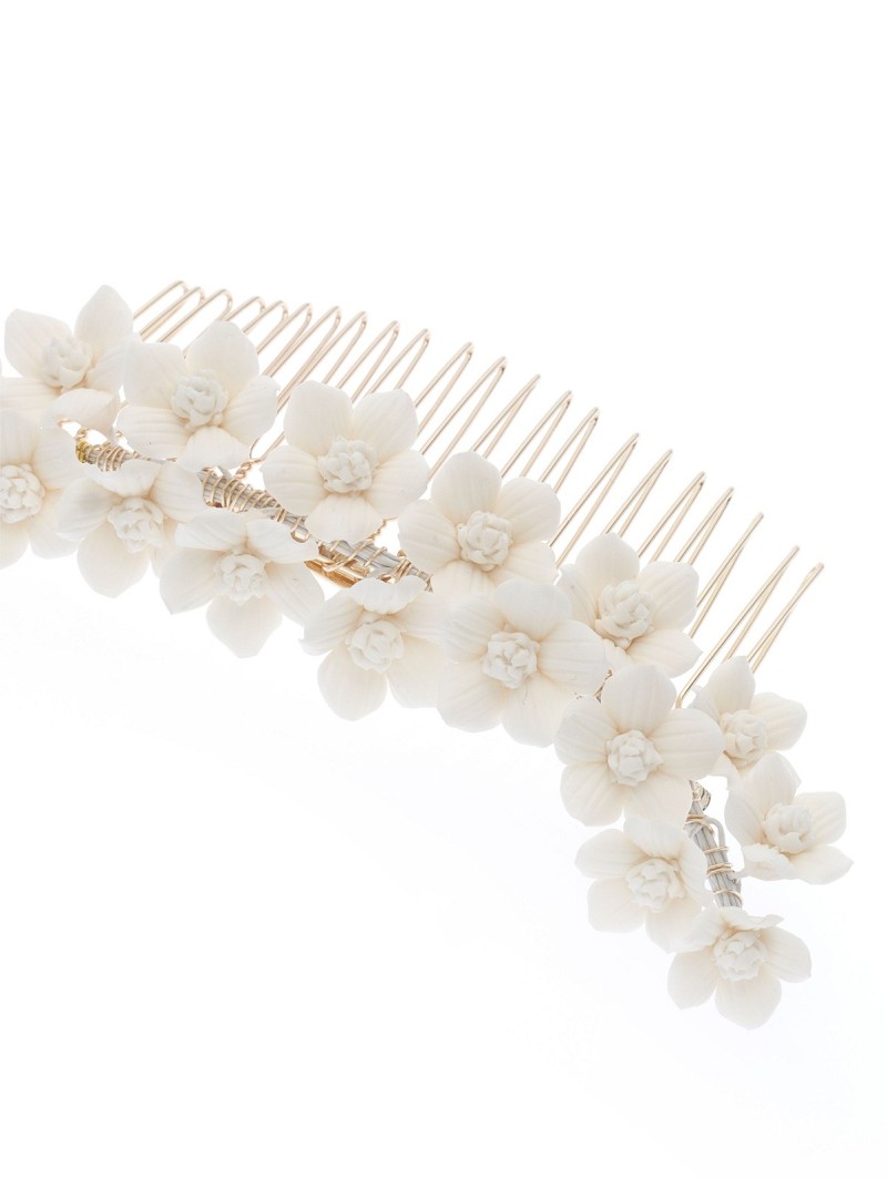 Haarsieraad dat bestaat uit kleine porseleinen bloemetjes op een kam