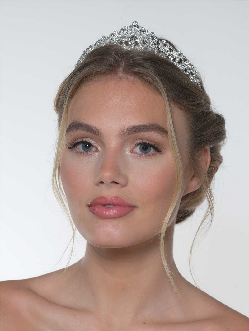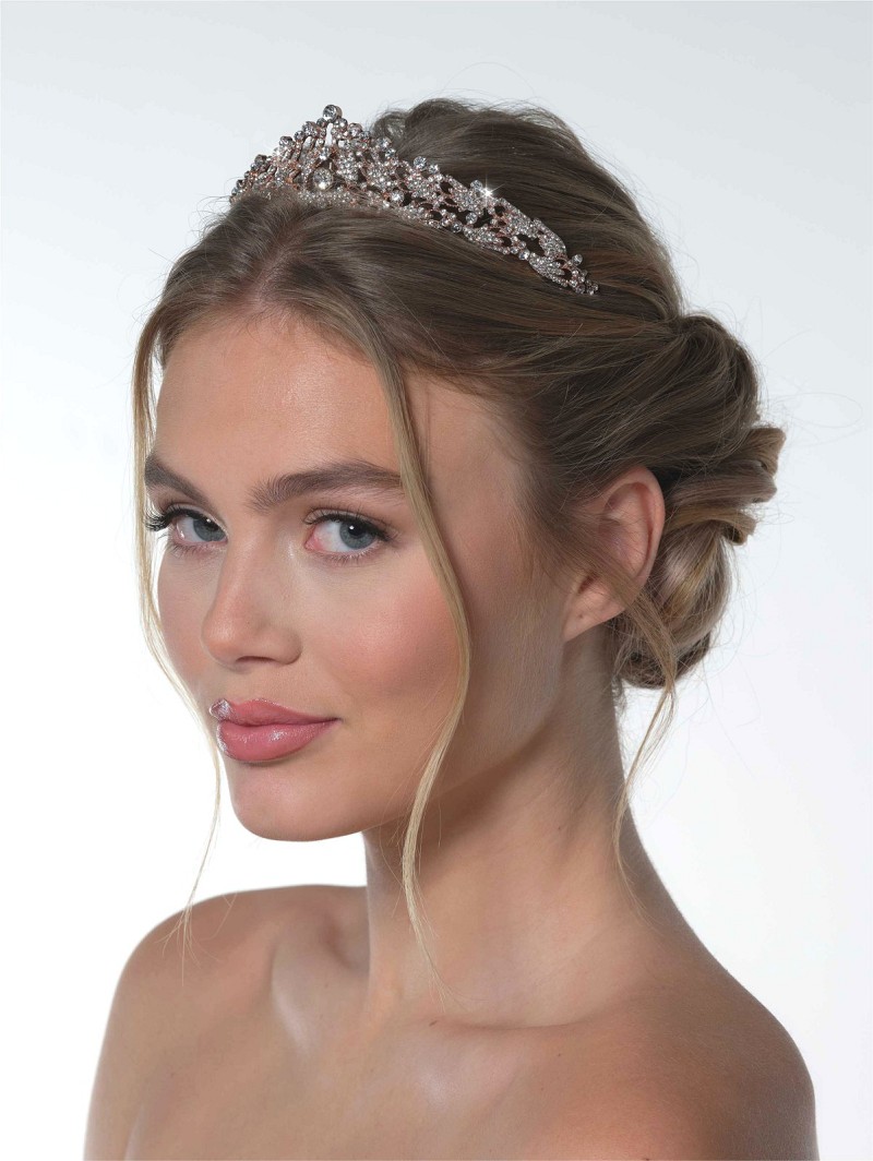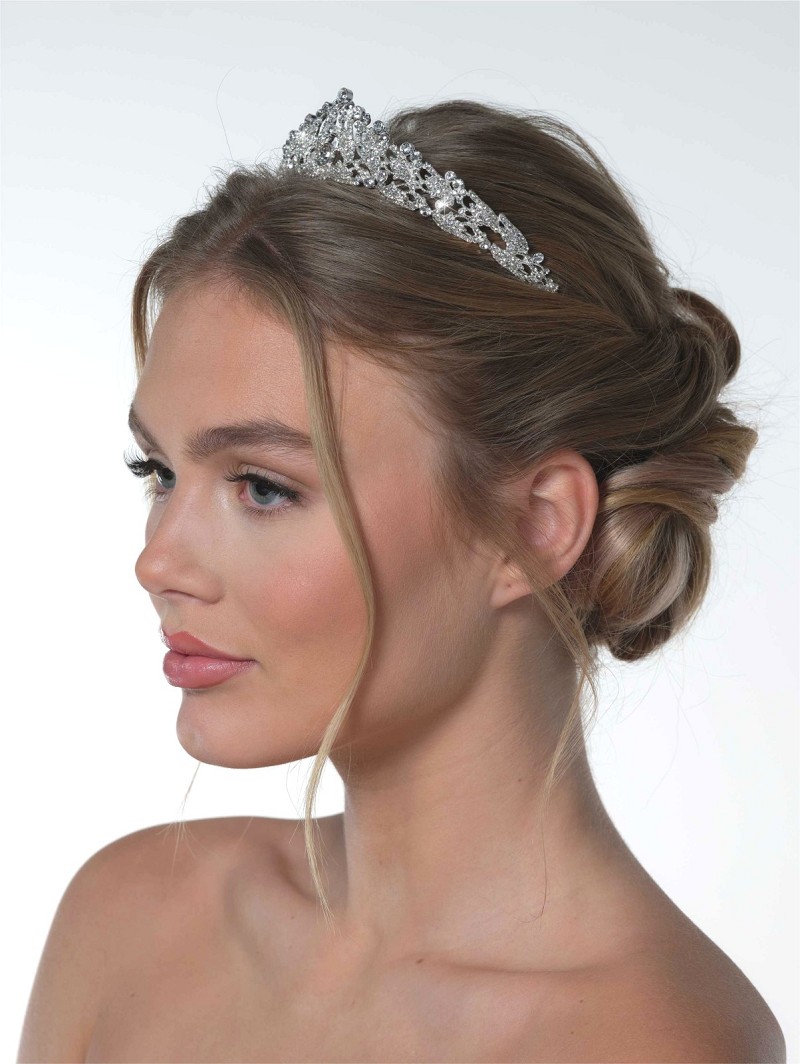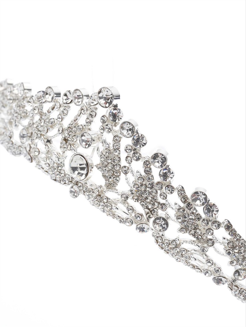 Tiara met opstaande rand versierd met strasssteentjes
