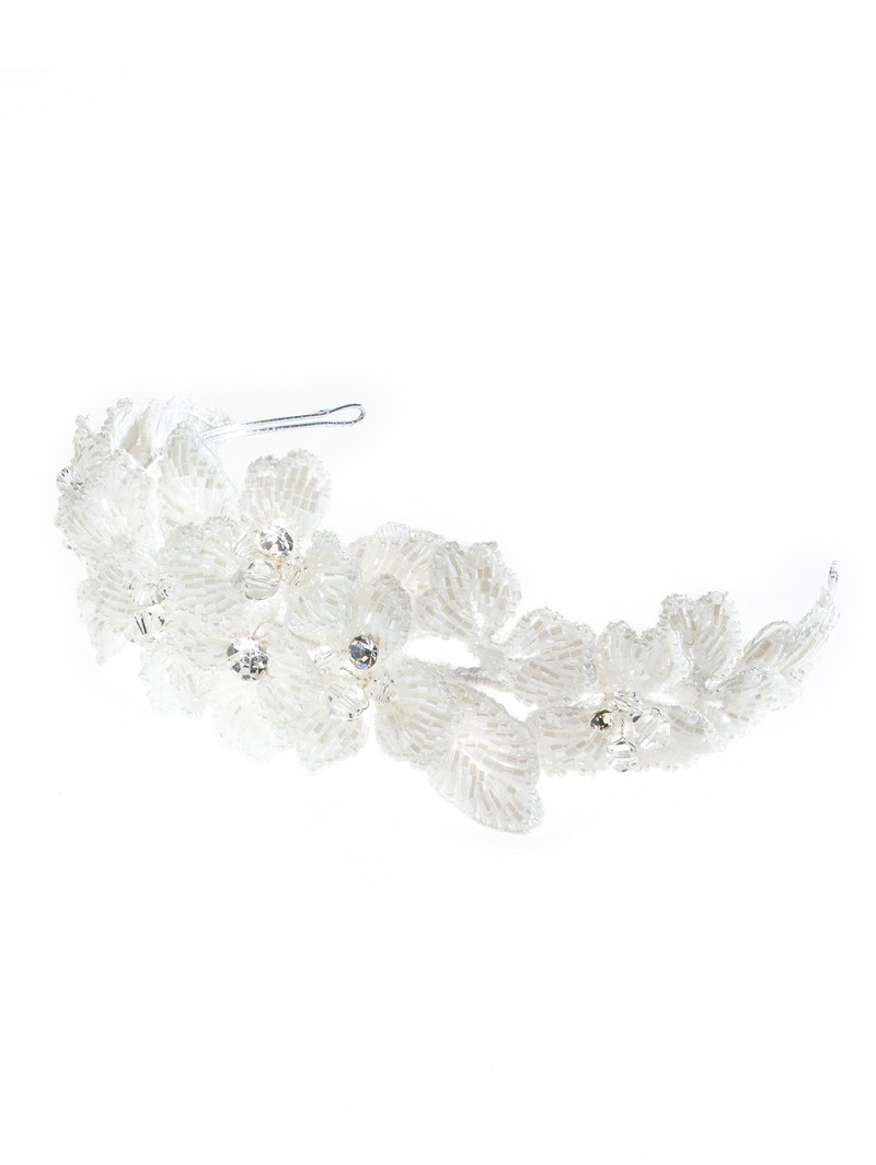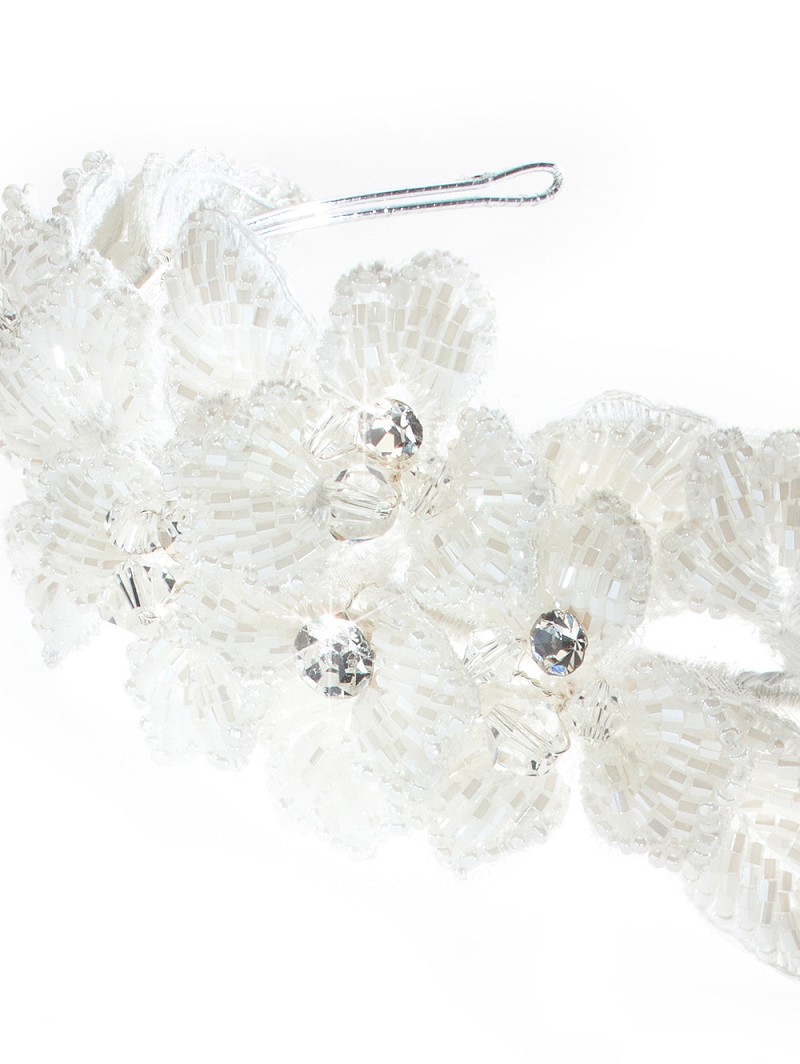 - Kenmerken: zilverkleurige basis, ivoorkleurige bloemetjes van deluxe glazen kraaltjes en strasssteentjes