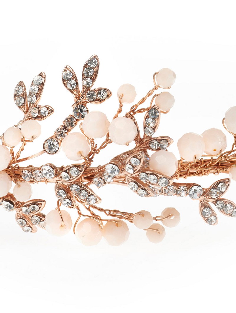 - Deluxe rosé goudkleurige tiara met blushkleurige kraaltjes en strasssteentjes