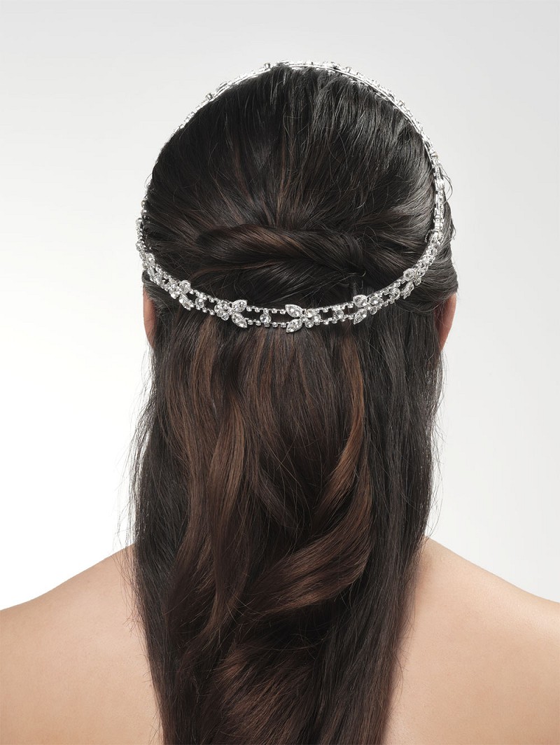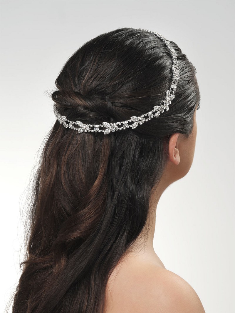 - De manier waarop deze tiara jouw trouwlook tot een ware showstopper maakt is doordat deze prachtige details heeft, zoals bladdecoraties en strasssteentjes. Deze tiara is ontworpen om te dragen op het achterhoofd. De tiara geeft een échte finishing-touch aan jouw trouwkleding en geeft jou die ultieme Pinterest-look waar je altijd al van droomde.