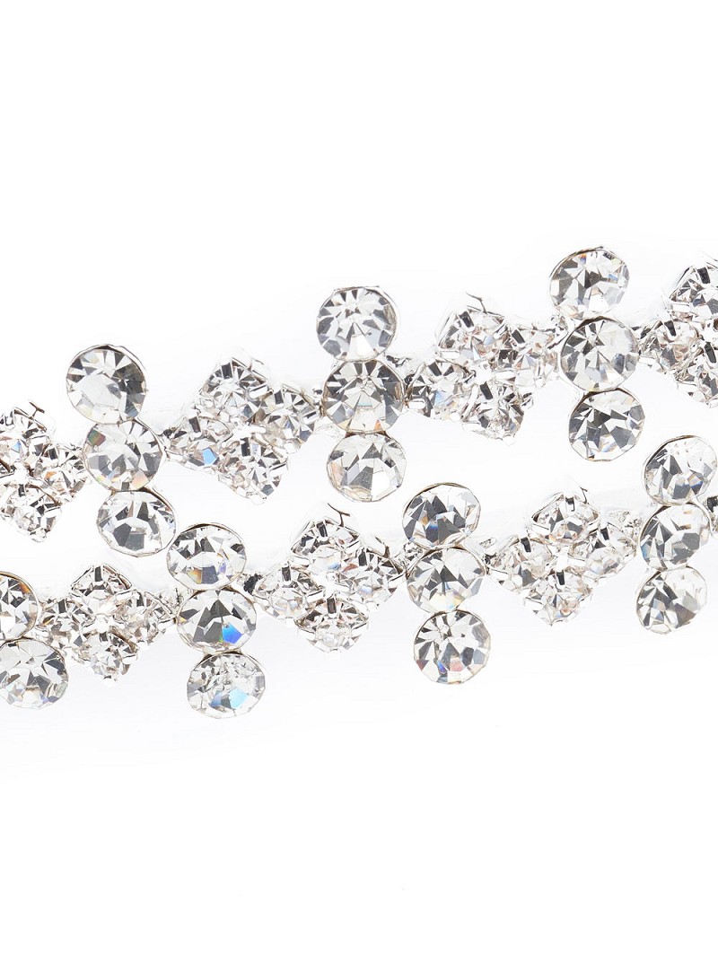 - Wanneer jij graag een tiara wil dragen met een royal allure, kies dan deze schitterende zilverkleurige tiara die bestaat uit 2 rijen schitterende strasssteentjes. Laat jouw bruidskapsel fonkelen voor het ultieme romantische gevoel en creëer een trouw-look die iedereen nog lang zal bijblijven.
