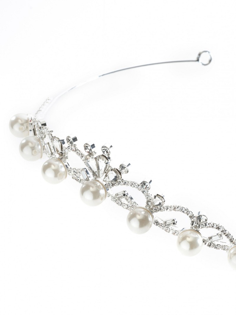 - Laat jij je inspireren door de wedding looks van moderne royals, en wil je je net als hen voelen tijdens jouw mooiste dag? Kies dan voor tiara BB-738, want deze heeft de look en sparkle waarmee jij een blijvende indruk zal achterlaten. De tiara is de finishing-touch die jouw look onvergetelijk maakt. De tiara heeft een zilverkleurige basis en is bezet met zowel strasssteentjes als grote parels in een Frans royal fleur-de-lis patroon om dit bijzondere item koninklijke allure te geven. Deze tiara wordt op het hoofd gedragen.