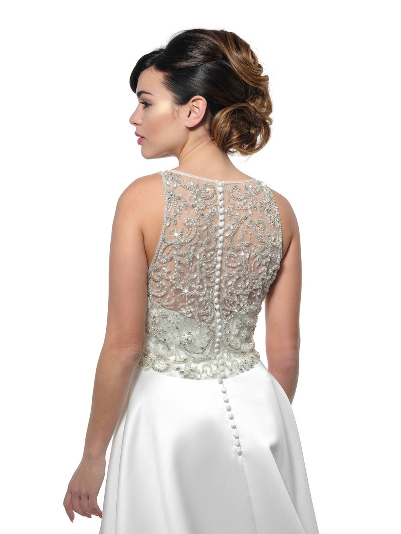 - Kenmerken: deluxe design, mouwloos, ivoorkleurig, versiering van kraaltjes, kristalletjes, strasssteentjes en pareltjes