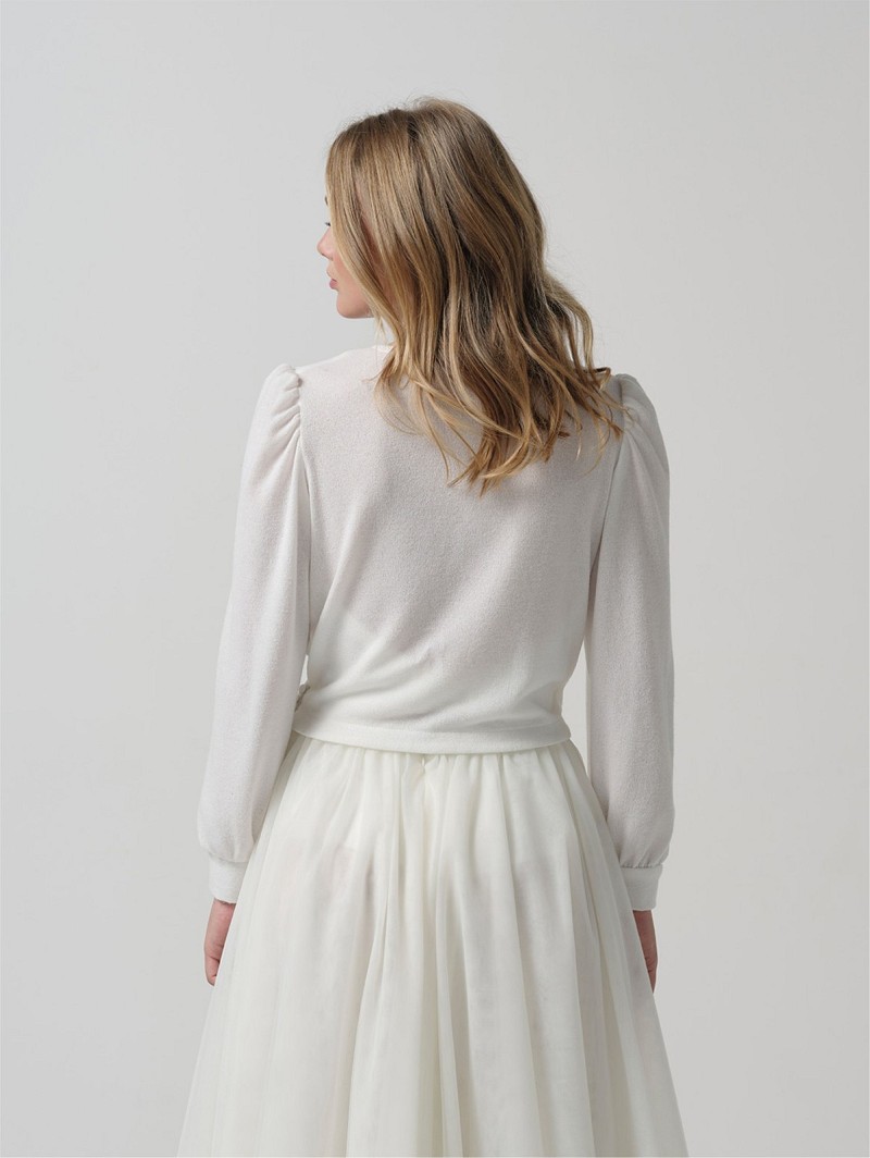 - Wanneer je op zoek bent naar een prachtige, geklede top met gesloten rug, kies dan voor wikkeltop T-135 uit de Essential Collection van Poirier. Deze top met lange mouwen is gemaakt van ivoorkleurige stof (80% acryl en 20% katoen) en heeft een gesloten rug. Deze top heeft een knoopsluiting in de taille. De top is verkrijgbaar in de maten S t/m XXL. Deze top is te combineren met een bruidsrok van Poirier. Deze top kan worden gecombineerd met alle bruidsrokken van Poirier.