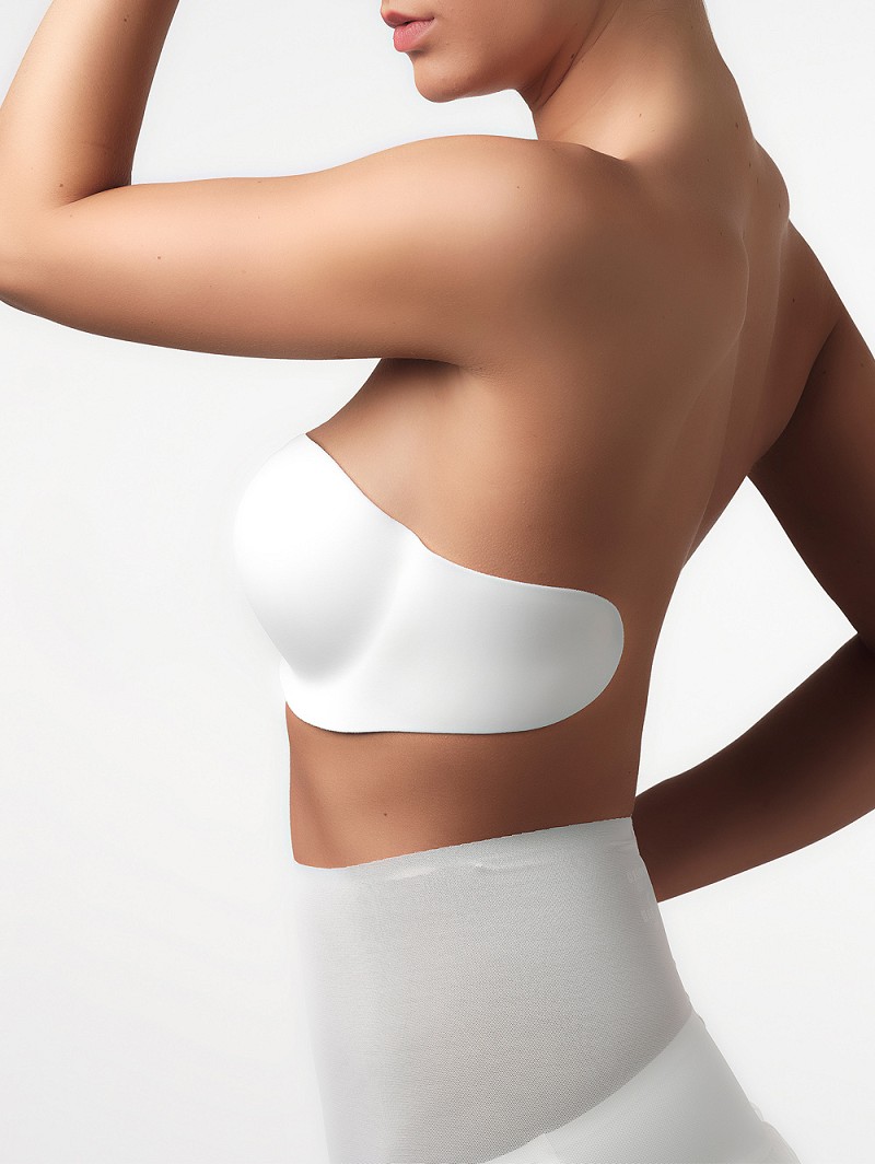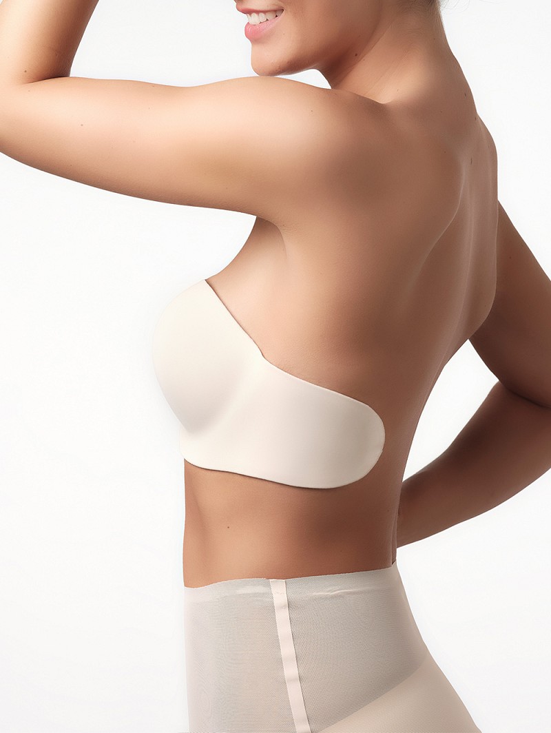- Kenmerken: zelfklevende, naadloze, strapless BH met lichte push-up functie en beugels, verkrijgbaar in de kleuren ivoor en blush